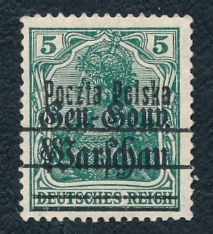 znaczek czysty bez podlepki ani jej śladu z nadrukiem smolistym z I formy przedrukowej |