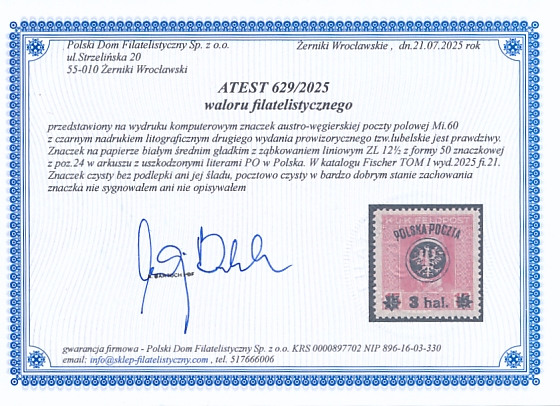 znaczek czysty bez podlepki ani jej śladu z nadrukiem II wydania prowizorycznego tzw.lubelskiego z ząbkowaniem liniowym 12½ na papierze białym średnim gładkim z formy 50-znaczkowej z poz.24 w arkuszu z uszkodzonymi literami PO w Polska która jest podobna do usterki B15 występująca na znaczkach fi.24 i 26 w Katalogu Fischer TOM I wyd.2025 fi.21 , gwarancja firmowa Andrzej Bartoch PDF - Polski Dom Filatelistyczny |