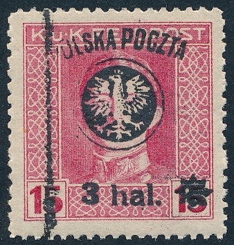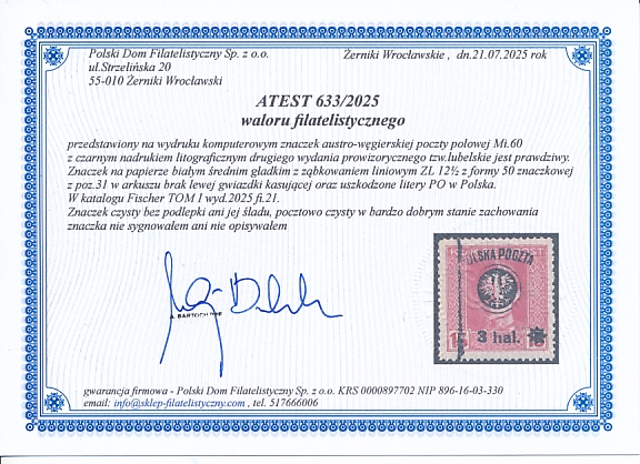 znaczek czysty bez podlepki ani jej śladu z nadrukiem II wydania lubelskiego z poz.31 w arkuszu z uszkodzoną lewą gwiazdką , gwarancja firmowa |