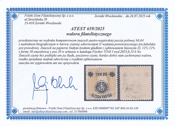 znaczek czysty bez podlepki ani jej śladu z nadrukiem odwróconym z ząbkowaniem 12½:12¾ w katalogu Fischer TOM I wyd.2025 fi.23 b No to bardzo rzadka spotykana odmiany ząbkowania na znaczku z nadrukiem odwróconym , gwarancja firmowa. Widoczne ślady farby spotykane na skrajnych znaczkach w arkuszu |