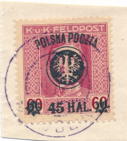 znaczek kasowany na wycinku stempel UP Lublin , gwarancja firmowa
