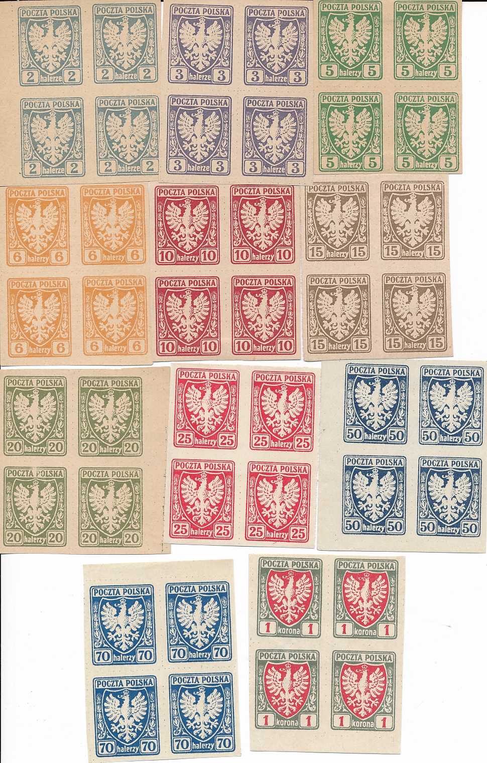 znaczki czyste wydanie niegumowane PKL z śladem po podlepce w czwórkach |