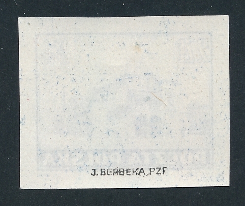 próba w barwie niebieskiej na papierze cienkim gładkim satynowanym czysta bez podlepki ani jej śladu, sygnatura na rewersie