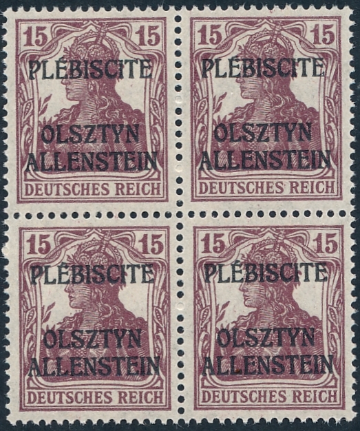 znaczki czyste bez podlepki ani jej śladu w czwórce w barwie ciemnobrązowokarminowej tzw. znaczek zwycięstwa gwarancja firmowa |